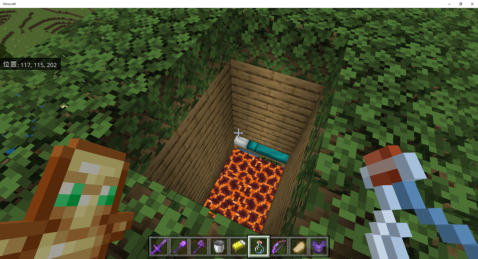 なお、以前Java Edition向けに書いたMinecraft 簡易襲撃(Raid)トラップは、少なくともBE 1.19.Xでは、ピリジャーが向かって来ない為に機能しない。